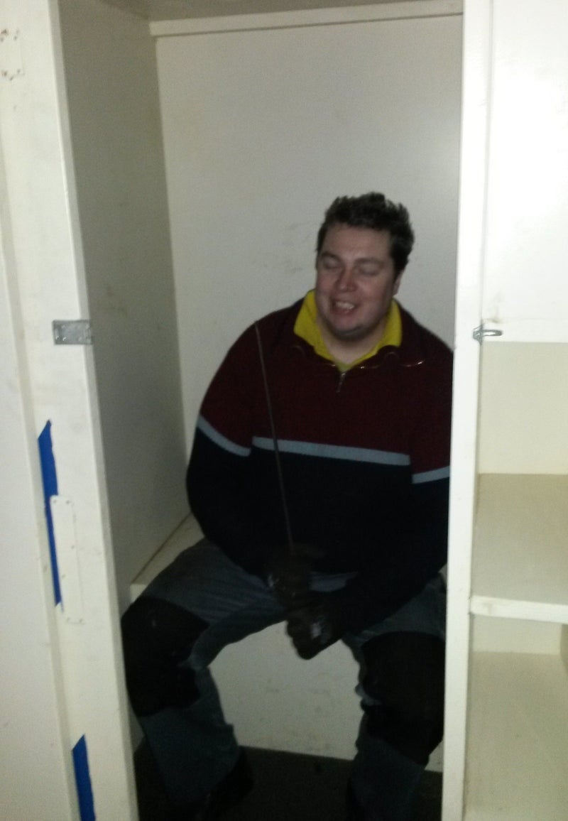 Achterin was een celblok van 2 cellen. Dus 2 deuren die eruit moesten.